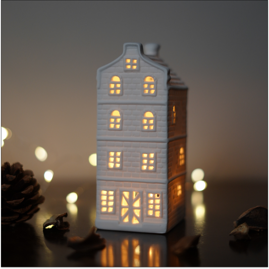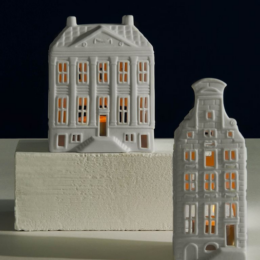 Christmas Ornaments: Blue & White Canal Houses - Set of 4