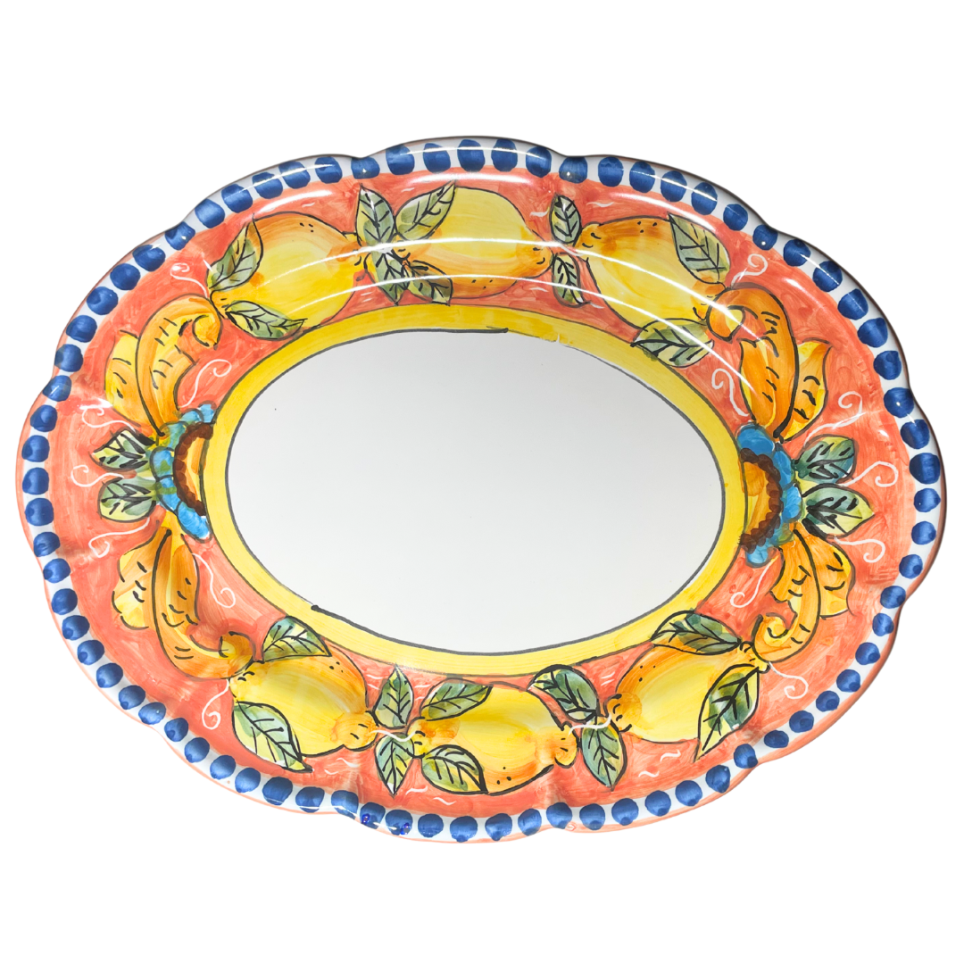 Crafted by artisans in Vietri Sul Mare, the Large Serving Platter is a showstopper for your dining table. Its generous size makes it ideal for entertaining, while the vivid hand-painted motifs bring Mediterranean warmth and vibrancy to every meal. With bold lemons and lush gardens, this platter doubles as both a serving piece and a display-worthy artwork.