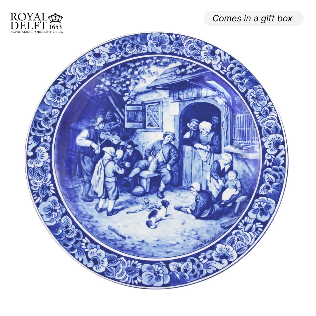 Music in Porcelain: Van Ostade’s “The Fiddler” in Delft Blue - A lively village scene unfolds on this Royal Delft plate, inspired by The Fiddler by Dutch Golden Age painter Adriaen van Ostade. Children gather, neighbors smile, and a violinist brings the moment to life — all beautifully reimagined in Delft Blue.