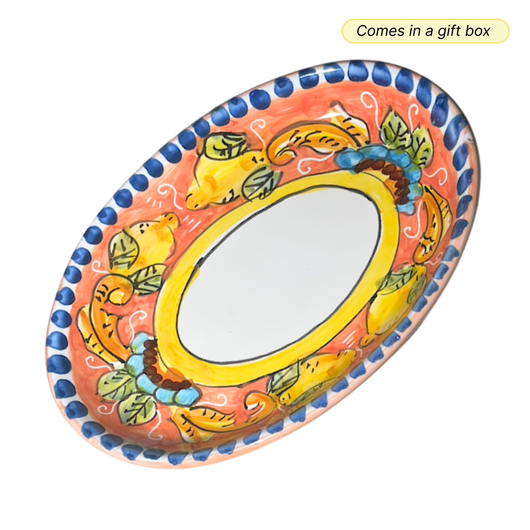 The Oval Serving Platter captures the essence of Italian hospitality. Hand-painted in Vietri, its elongated form is perfect for presenting Mediterranean feasts. The lemon and garden motifs flow across its surface like a fresco, celebrating the joy of sharing meals with loved ones.